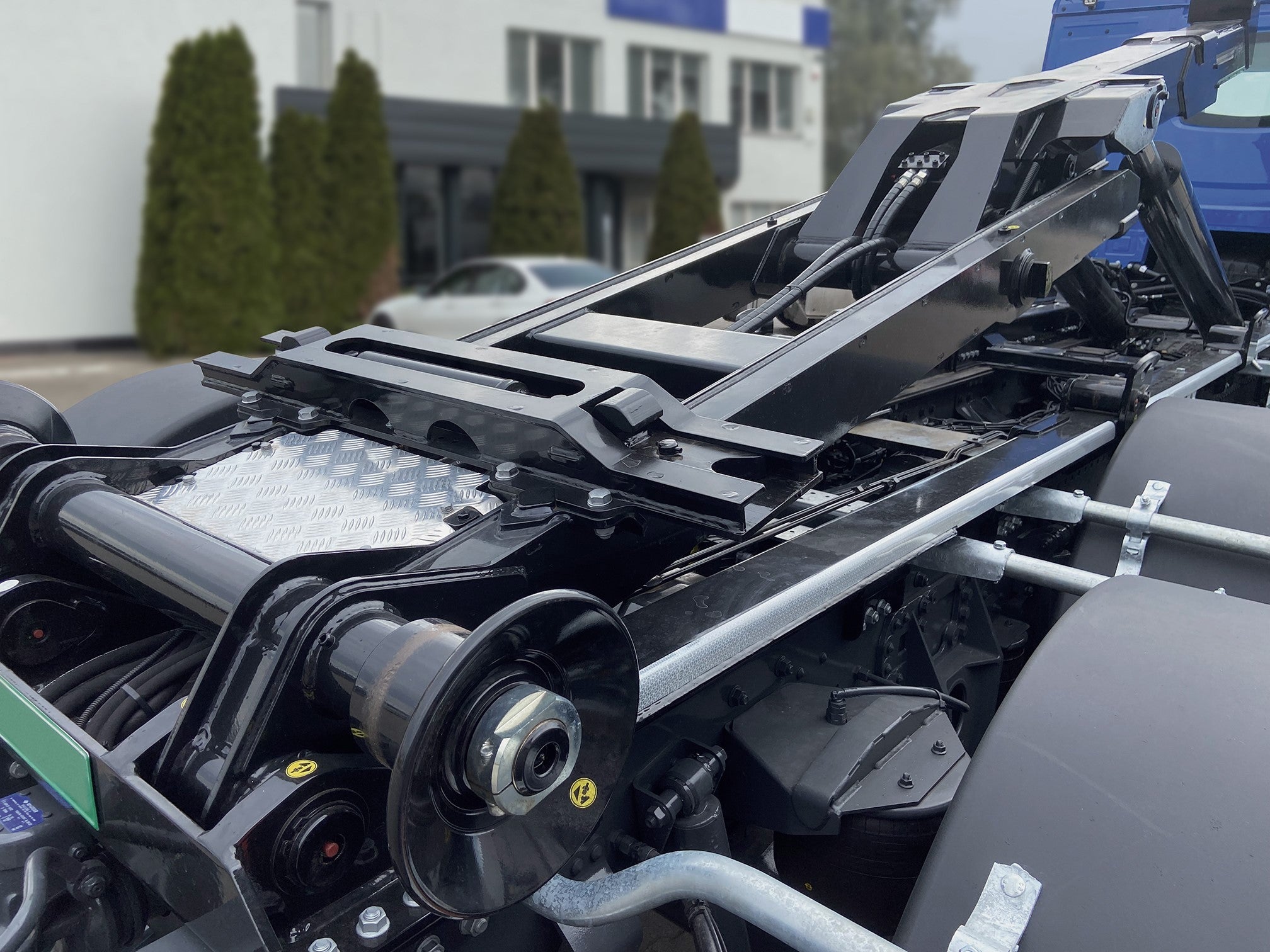 Die leistungsstarke Hydraulik sorgt für ein schnelles und sicheres Abrollen der Container.