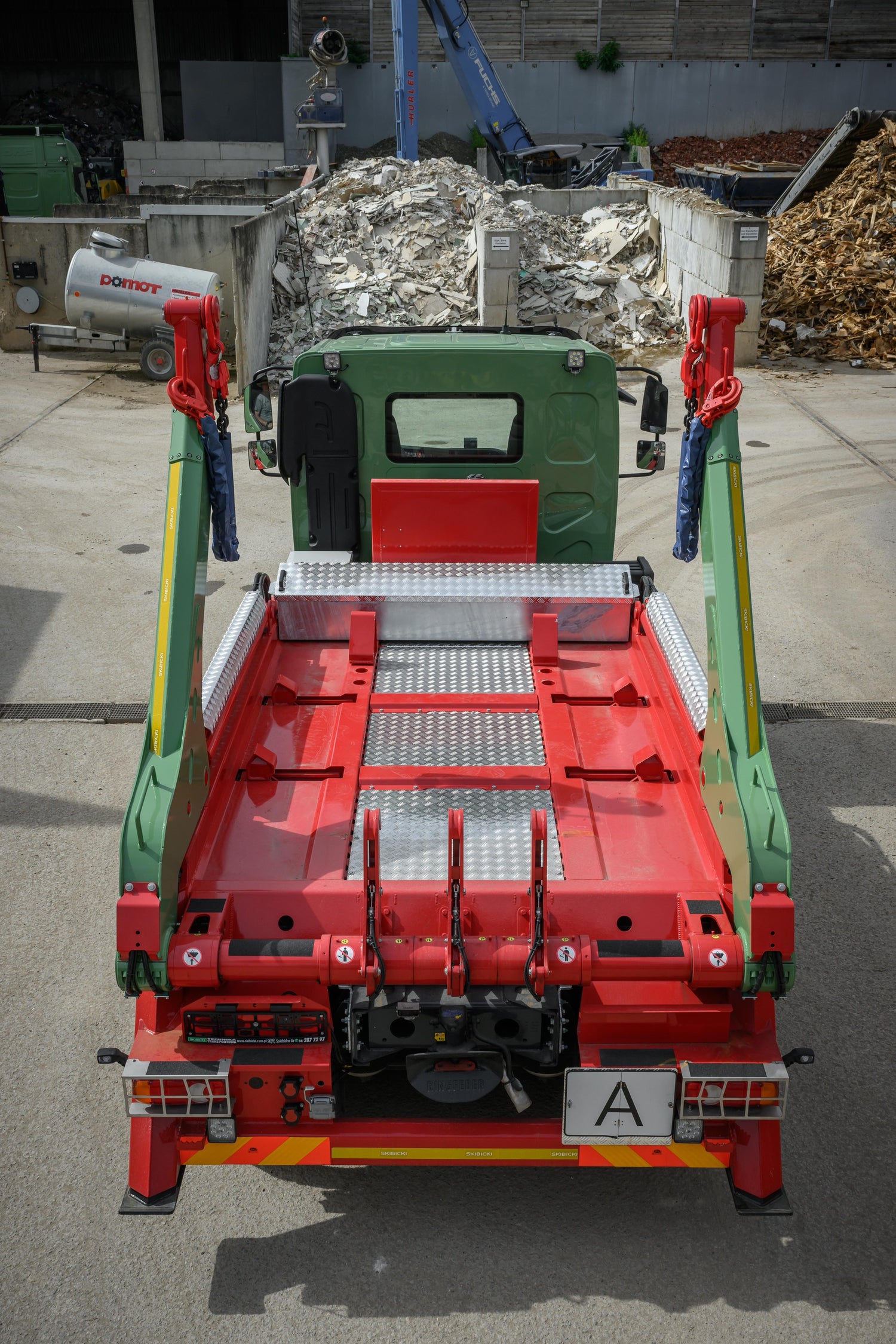 - Längere Kipphaken, für hohes Auskippen, schonen Container und Böden.